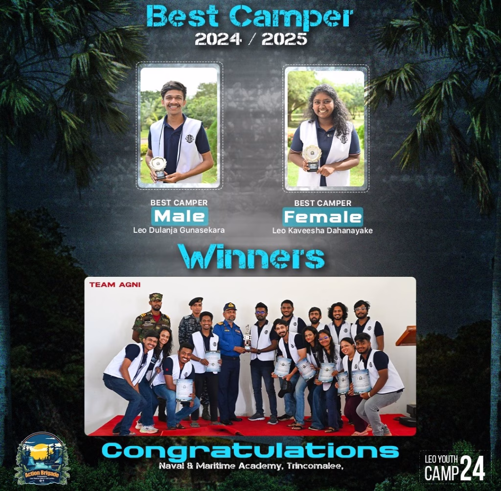 At 2 PM, we gathered for the camp’s concluding event. A video montage captured the best moments of Action Brigade 6.0, leaving us nostalgic and proud of our experiences. The Best Male Camper award was presented to Leo Dulanja Gunasekara, and Best Female Camper went to Leo Kaveesha Dahanayake. Team Agni was crowned the Best Team, a testament to their outstanding teamwork and spirit.